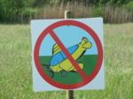 Domenica 25 Finalmente sole! Gironzolo qua e la salutando e chiacchierando con amici che da tempo non vedo e piano piano, senza manco accorgermene, mi ritrovo a fianco dello zio in testata 35; Luciano mi fa un gesto con la testa: "Hai visto il divieto? Vai a vedere!". Seguo il suo sguardo e noto in distanza un cartello circolare; la zona in cui è piantato mi richiama alla mente ... un paio di fatti poco piacevoli ... ed il il cartello si riferisce proprio a quelli! Un bel segnale di divieto con disegnato un ... aeroplanino screpolato e col muso a terra. Fantastico!