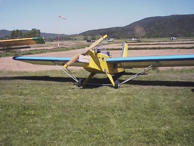 Un Minimax. Sul cartello anche se non si vede c'è scritto"Vendesi".Non ho capito se solo l'elica o tutto l'areoplano