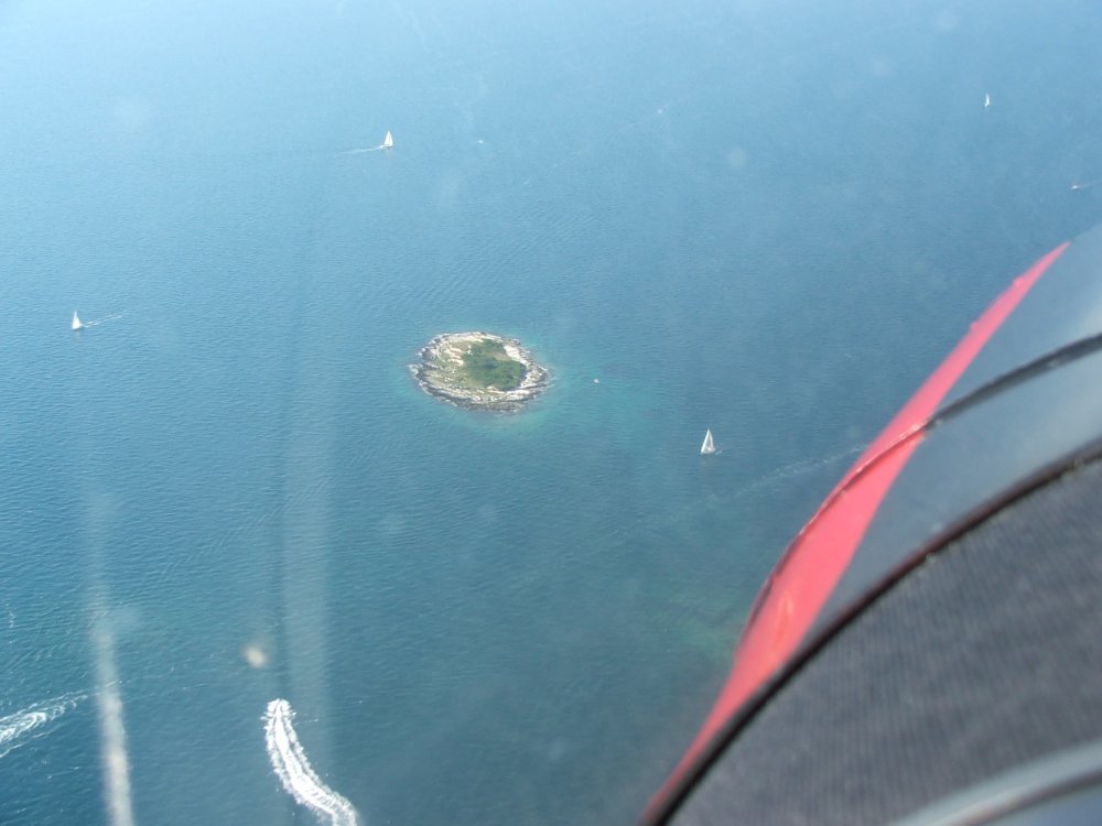 Al rientro in aeroporto scambiamo due battute con altri piloti italiano (ce ne sono parecchi!) che si apprestano a decollare, prima di prepararci a nostra volta per il volo di ritorno. "Spillo" una decina di litri di verde (meglio un litro in più che una goccia in meno) dal "tanker" di Lucio, indosso l'ormai "abituale" salvagente e faccio un cenno a Flavio che effettua la chiamata radio. Autorizzati al decollo dopo il bimotore per pista 36; attendo un attimo ... due attimi (era un bimotore!) che se ne vada la turbolenza di scia e ... a rieccomi in mare aperto.