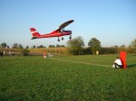 Faccio un pò di quota per avere una visuale più ampia ed ecco che scorgo lo striscione bianco davanti a me. Sono in anticipo e quindi eseguo un 360° prima di immettermi in "dirittura finale" ; la moglie mi scandisce i secondi mancanti ... troppi ... flap e minima di sostentamento ... stop ! Discreto, ritengo 7-8 secondi in anticipo; ora velocità 120 e prua 57° ... alla ricerca del punto sconosciuto!