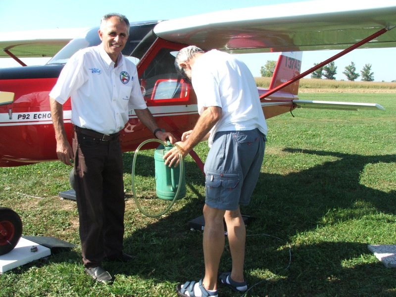 L'orametro dice 50 minuti; la seconda pesata rivela un consumato di soli 8 kg ... si potevano aggiungere altri punti ... ma non sarebbe cambiato nulla! Siamo al caffè, dopo il classico risotto "alla pilota", quando (due ore dopo il mio atterraggio !!!) arriva Maurizio col suo delta; ha volato per oltre tre ore sorvolando tutti i 14 punti dati e consumando meno di 15 litri di benzina! Fantastico!