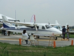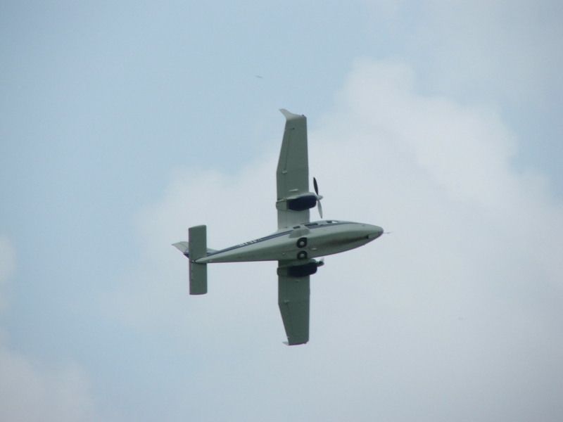 Tutto sommato il tempo tiene abbastanza bene permettendo ai pochi dimostratori di eseguire i loro programmi. Personalmente ho molto apprezzato il volo del bimotore Tecnam; una dimostrazione ben fatta e molto efficace, con 360 eseguiti in monomotore (sia destro che sinistro) ed atterraggio con ambedue le eliche in bandiera.