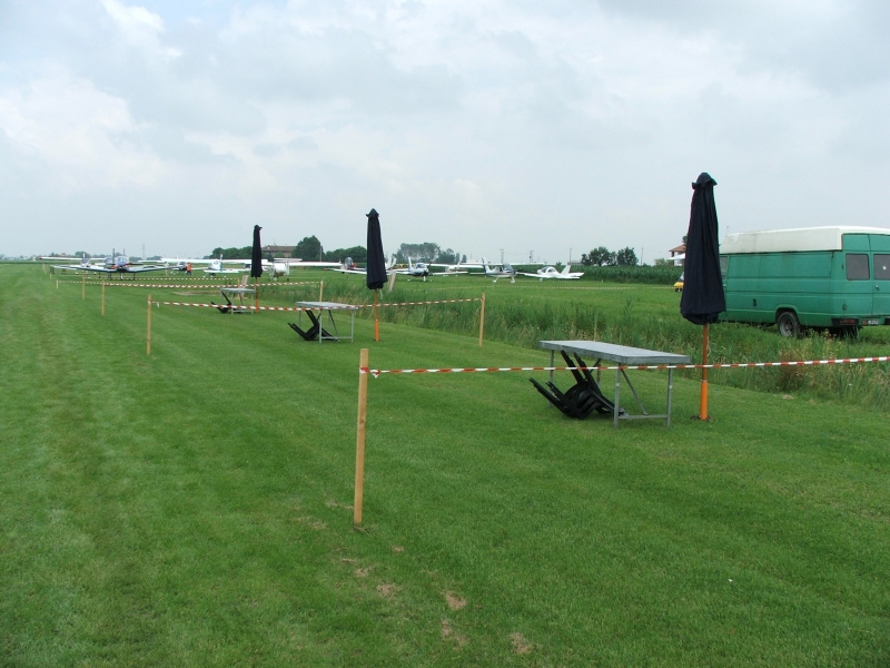 In prossimità di Bologna non vediamo le colline che vanno da sud a ovest, completamente coperte da nuvoloni neri che arrivano sino a terra. Come sempre in questi casi, ci rallegriamo per la scelta ... del mezzo. Ad est invece, verso l'aviosuperficie "G. Zamboni" il cielo è più chiaro ma quando arriviamo il traffico aereo è decisamente scarsino.
