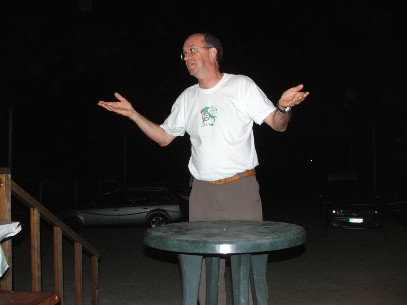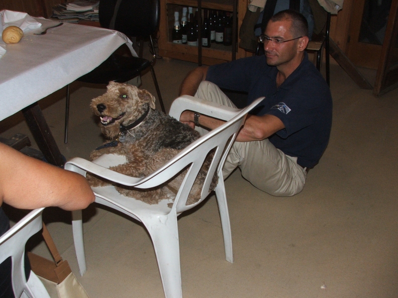 Il primo sconosciuto che ci si fa incontro (ma col quale instauriamo da subito un’ottima amicizia) è Baby, un badstardo (di razza) di taglia mediogrande che non dice mai “bau” (se non per difendere il suo territorio dalle vacche al pascolo e da cani e gatti “non soci”) ma che si infila tra le gambe di tutti coloro che gli passano a tiro e che dimostrerà una particolare attrazione per gli asciugamani stesi al sole dal trio Amedeo, Renato e Massimo che “strascicherà” orgogliosamente in giro per il campo.