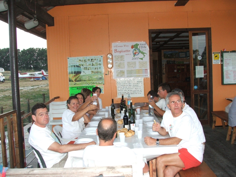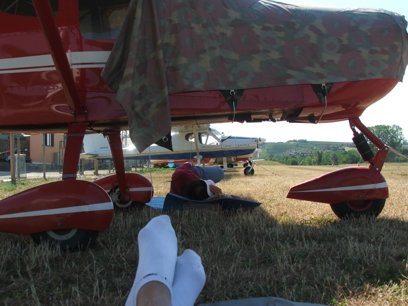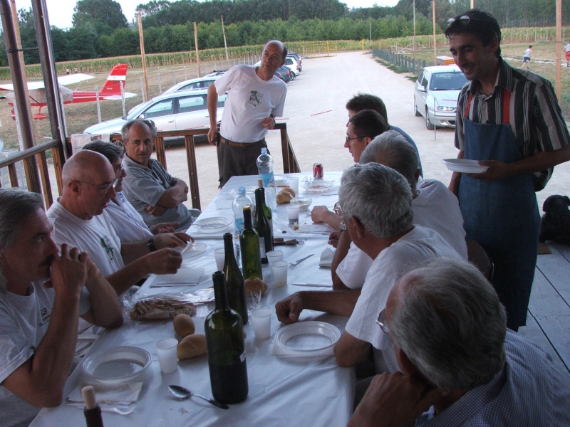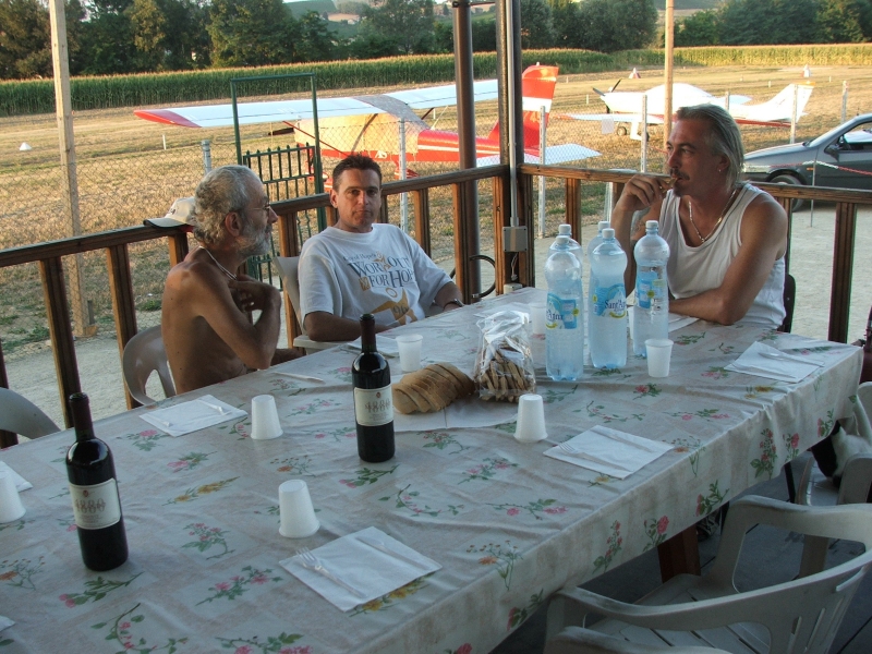 Non vorrei parlare di vini (forzato astemio) ma ciò non è possibile! In una zona dove se hai una piantata motore devi solo decidere (in base all’ultimo pasto effettuato) quale tipo di uva vuoi pigiare con l’aereo, è impossibile non parlare di vino; così come è impossibile rifiutare gli assaggi (anche se proprio un vero centellino) delle varie bottiglie che si concretizzano in continuazione ad opera dei vari soci del campo, in costante competizione su chi ce l’ha più … buono!.