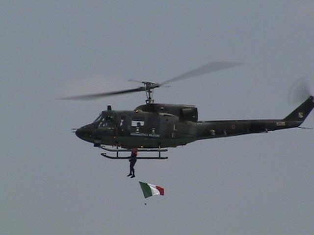 Alle 14 un AB 212 SAR della Squadriglia Linate apre le danze esibendosi in un recupero dalle acque dell'Idroscalo, dopodichè inizia il primo blocco di ... voli, lanci, tuffi, pompiere, ... non so quali termini usare per descrivere questi esilaranti ... disatri, e ci si accorge subito che i tempi non potranno essere rispettati, perchè il recupero delle macchine ... poco volanti, è molto più laborioso del previsto e richiede a volte l'intervento dei "sub" (almeno loro ... "normali") per recuperare dal fondo e riportare in superficie gli oggetti ... progettualmente (ma solo progettualmente) inaffondabili.