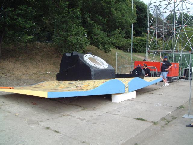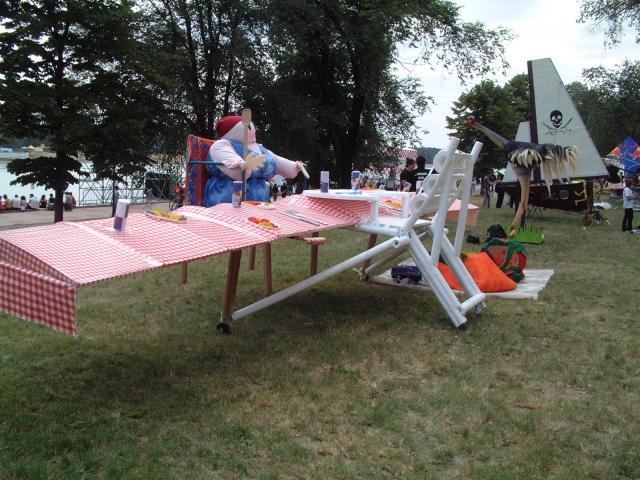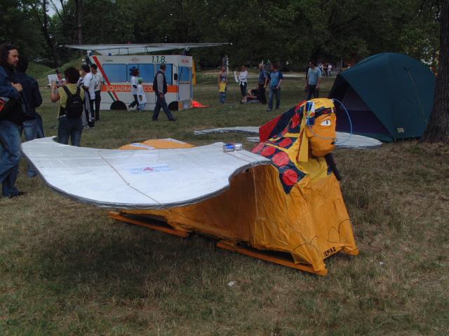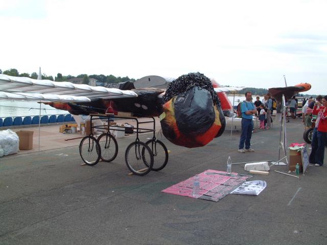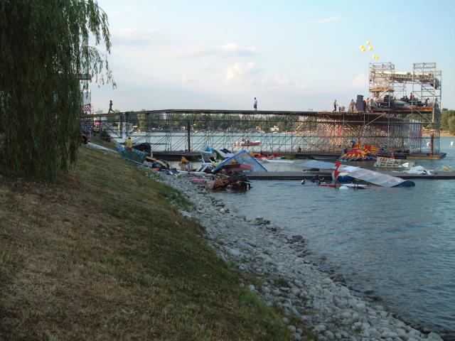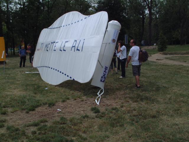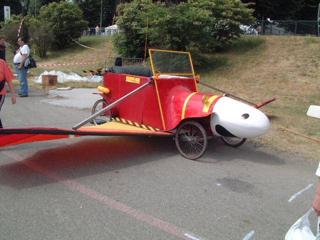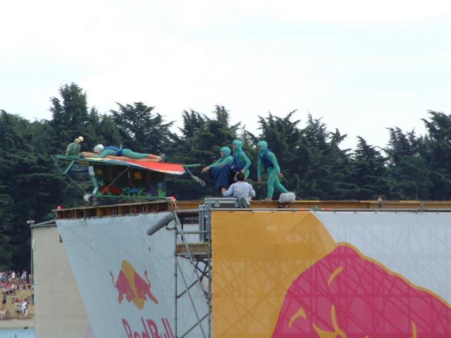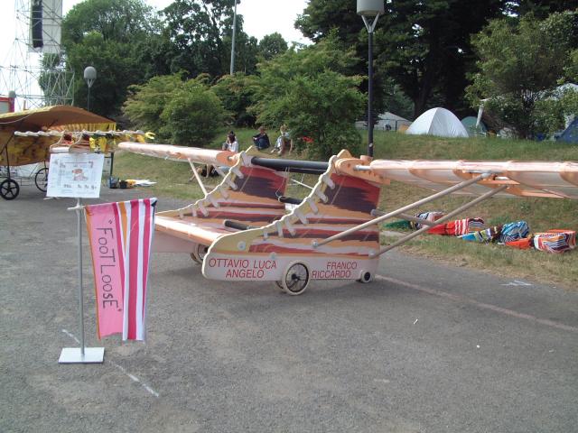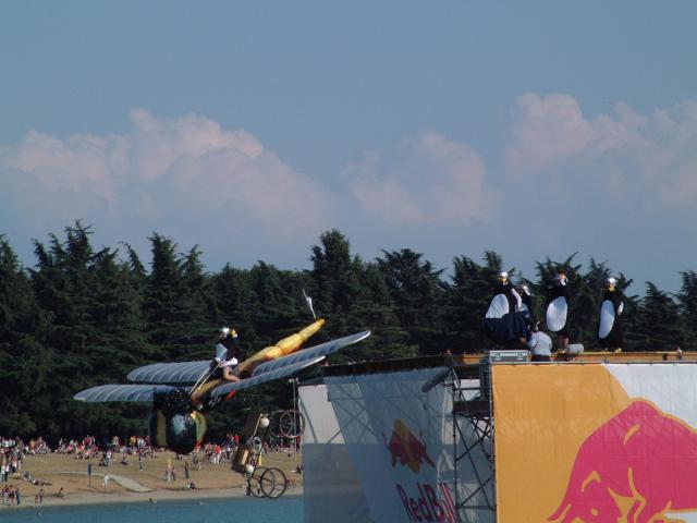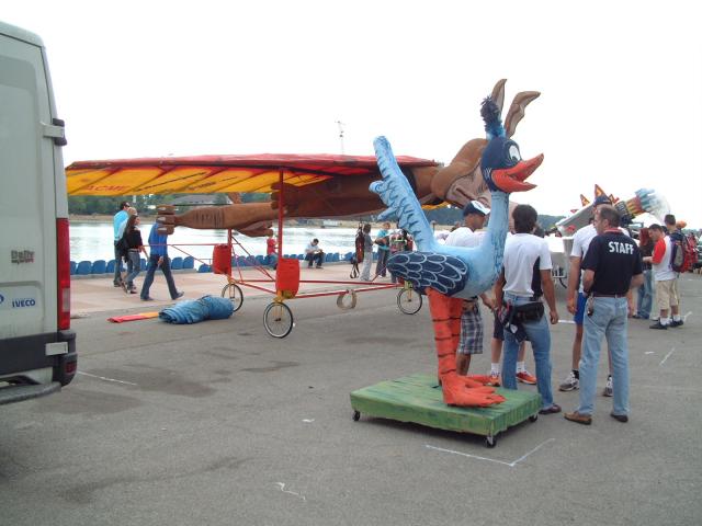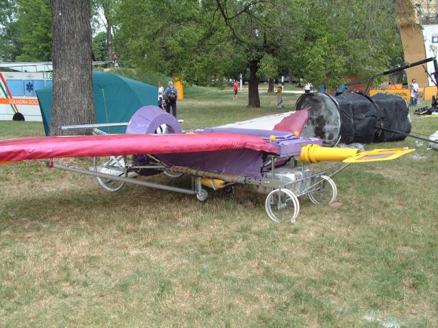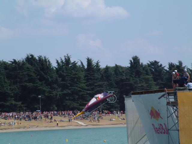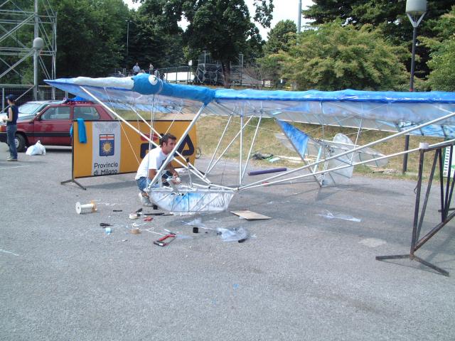 Giorni fa vidi la pubblicità del 1° Red Bull Flugtag all'Idroscalo di Milano; che faccio, non ne approfitto ? Cerrrto che ne aprofitto, ed eccomi qui ad aggirarmi tra una trentina di questi "cosi" che dovrebbero librarsi nell'aria per poi ammarare (?) dolcemente nelle calme acque dell'Idroscalo!