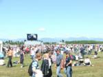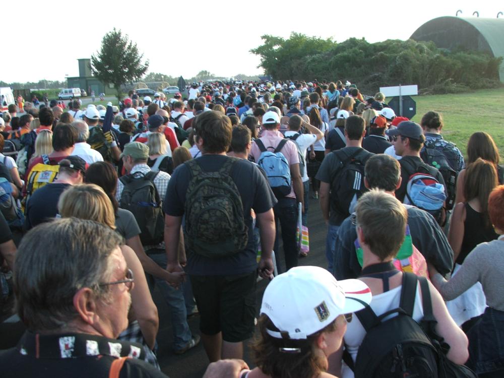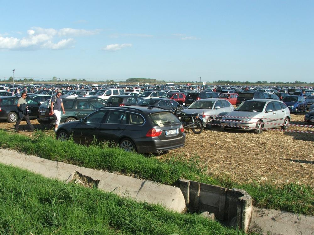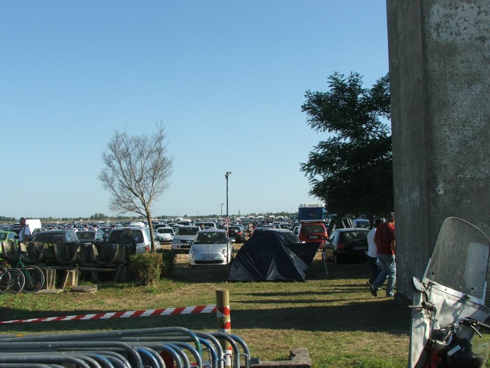 Auto e camper riempiono ovunque ogni spazio disponibile; lo sterrato che porta alla base (che per l'occasione viene riservato a pedoni e biciclette) è una processione continua.