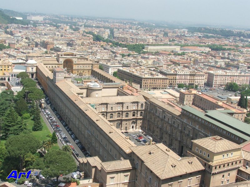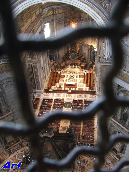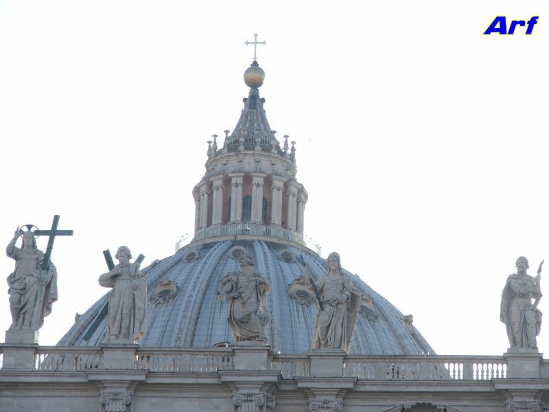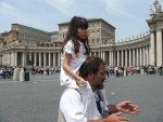 Giovedì 18 Maggio - Alzati di buonora con l'intento di visitare i Musei Vaticani, ci troviamo davanti una coda che partendo (a ritroso) dai Musei arriva fino alle porte di Piazza S.Pietro! (stimo oltre 1 km) e mi rifiuto categoricamente (rischiando il divorzio!) di partecipare alla processione! Passiamo quindi la mattinata visitando la Basilica, le Tombe dei Papi, Il Museo dei tesori Vaticani e per finire la cupola cuccandoci 600 scalini in salita e (non ci crederete mai!)
