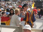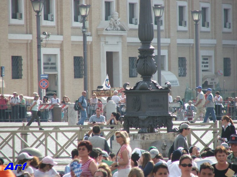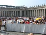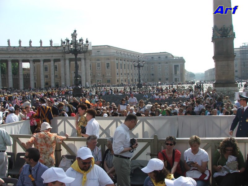 Mercoledì 17 maggio - Verso le 8 ci arriva la telefonata di Annalisa (Santa donna del Chicco!) che ci avverte che lei e sua cognata(?) sono già "appollaiate" vicino alla transenna centrale e ci hanno tenuto due posti. Sotto il colonnato sono stati installati posti di controllo tipo check-in aeroportuale e le code sono già lunghette!