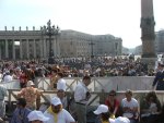 Certo che se trovo Murphy da qualche parte ... gli faccio ingoiare le sue stramaledette leggi !!! Finita la benzina della Papamobile, Sua Santità si appresta ad iniziare l'Omelia, ma prima vengono elencati dai vari Prelati tutti i gruppi presenti e la loro provenienza. Come anticipato, sono rimasto esterefatto per le quantità di scuole, gruppi, associazioni, Parrocchie ecc. che arrivano dalle parti più impensate e distanti del mondo!