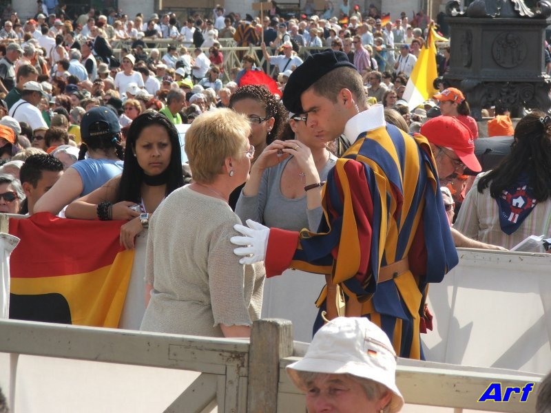 Stò per tirare due moccoli e qualche Madonna ma mi trattengo; ho alla mia sinistra una Guardia Svizzera, alla mia destra un Agente in divisa ... e mi stà passando davanti Il Sommo Pontefice! Non vorrei passare il resto del mio soggiorno relegato su qualche inginocchiatoio della Cappella Sistina a recitare qualche migliaio di Pater-Ave-Gloria per espiare le mie colpe!