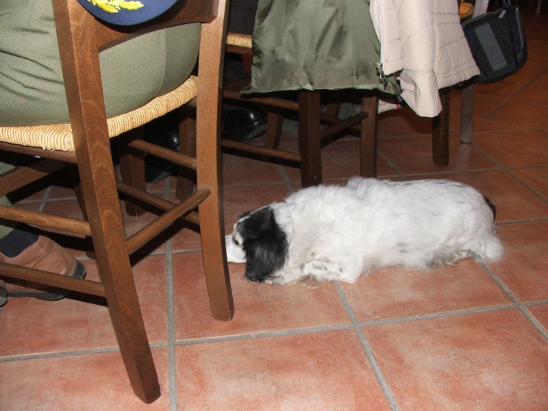 All'accoglienza trovo il compagno di raid Carval (fautore della neonata Associazione Italiana Diporto Aeronautico) che mi alleggerisce il portafogli in cambio del "numerino" garante del posto a tavola. Molti (non prenotati) dovranno accontentarsi di un panino o recarsi ad ... altre tavole nei paraggi.