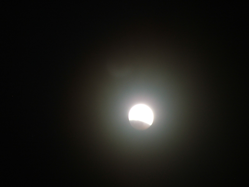 Trascorsa la notte ... all'ombra della luna in eclisse totale, con un cielo pulito come poche volte capita di vedere da queste parti; mi alzo verso le 9 convinto di vedere le cime di Alpi ed Apennini, e invece a fatica vedo le cime ... delle piante a 700-800 metri di distanza. Porcaccia miseria!
