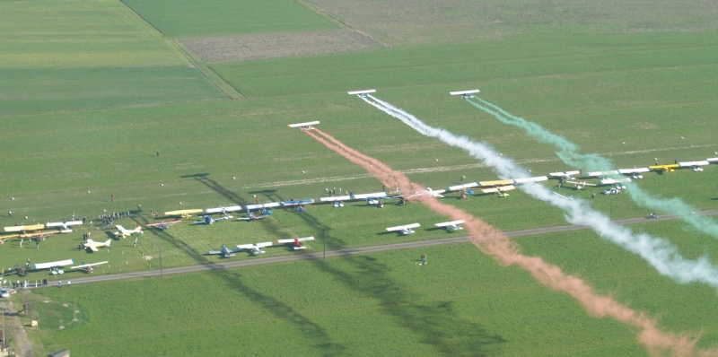 Nel pomeriggio, a mò di ciliegina di questa magnifica giornata d'inizio stagione volatoria, tre colorati Firefox eseguono alcuni passaggi sulla pista e concludono con una bella e spettacolare fumata tricolore e poi ... tutti in ordinata fila per i decolli in sequenza.