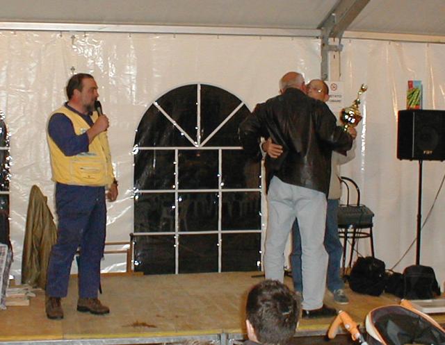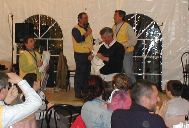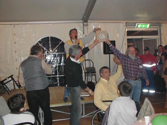 E veniamo alla serata della domenica. I "Baroni Rotti" festeggiano il loro 10° compleanno con un bellissimo gesto; la consegna delle foto dei due bimbi "adottati a distanza" a tutti coloro che hanno contribuito alla realizzazione del loro grande "sogno". Luciano ricorda poi, con un toccante pezzo musicale, tutti gli amici che ci hanno lasciato per ritrovarsi a volare lassù, nei cieli più alti e consegna il "Memorial Enrico Nucci" a ????.