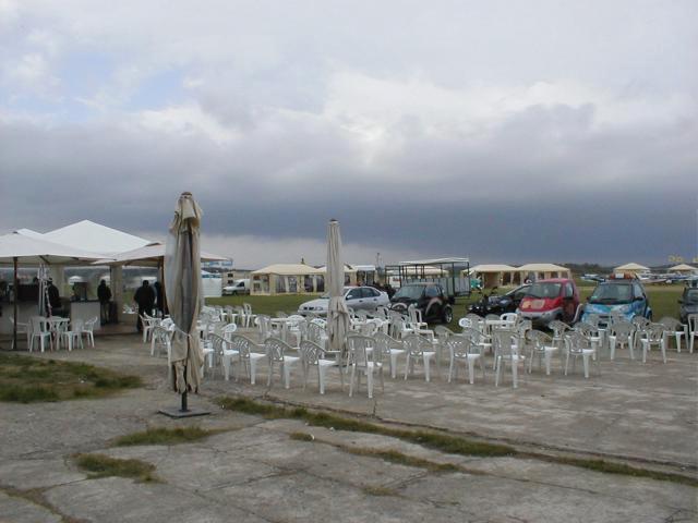 Girovagando per l'immensa area noto il parcheggio auto pieno e una notevole presenza di camper sul piazzale a loro riservato (al meeting si va comunque!). Verso le 18 le prime gocce (puntualissime sulle previsioni di papà Orso!)
