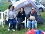 La mattina è frizzantina; arrivati al campo e completati i saluti, ci dedichiamo al rituale montaggio del nostro "igloo residence". Terminato il "dovere" passiamo al "piacere" ovvero la prima visita agli stands. Man mano che passano le ore l'aria si scalda piacevolmente. Gli arrivi si susseguono numerosi e in tarda mattinata dichiaro il mio "pentimento" per essere arrivato in auto. Faccio "una vasca" col Flavio e sul mezzodì, casualmente, ci ritroviamo a passare dallo stand di Simonini dove, ancor più casualmente, troviamo Graziano & c. impegnati in un fugace spuntino al quale siamo gentilmente invitati a partecipare. Come dicevo leggero e frugale ... a base di salame, soppressa, cicciole e formaggi vari, il tutto annaffiato da vini proveniente da ogni parti d'Italia; che fatica trovare un bicchier d'acqua! Anche in questo Renzo è ineguagliabile!!! Tornati allo stand FIVU avviso la moglie che ... non ho fame e, degustando un gelato, mi porto in "prima fila" dallo zì che mi mette al corrente dei grossi problemi incontrati quest'anno con il vicino parco.