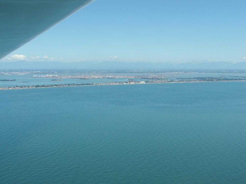 Indossiamo quindi i giubbotti salvagente e ... rotta verso Chioggia per puntare poi in diretta su Caorle. Come arriviamo sul mare l'aereo si tranquilizza (beato lui) e smette di sussultare; l'aria è abbastanza tersa e godo del paesaggio (per me nuovo) delle isole e di Venezia viste dal mare. Atterriamo a Mazarack verso le 12,30 e ci portiamo subito al ristorante.