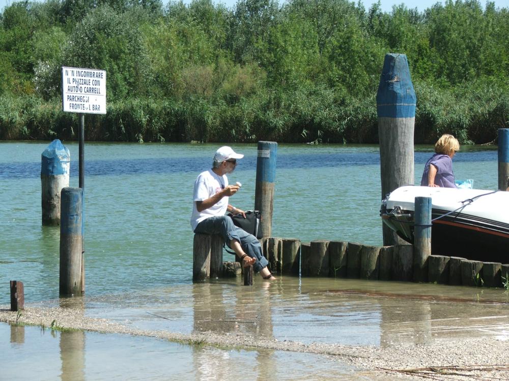 Il "frugale" pranzo composto da moscardini e seppie in umido (rigorosamente annaffiato con acqua frizzante) per me, baccalà mantecato e anguilla in umido per Lucio, Sarde e fritto misto per Flavio, viene seguito da una salutare camminata con breve penichella prima di riprendere la strada verso Codroipo. Prima però, vista la vicinanza, facciamo una breve visita al nuovo fantastico campo di Di Biaggio a Caorle e controllo l'esattezza delle coordinate dell'ulteriore nuovo campo di Bibione sorvolandolo.