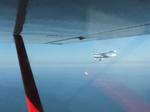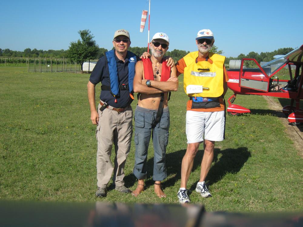 Domenica 1 = Accurati controlli prevolo, salvagenti indossati e ... via dall'elica! Seguo il Tagliamento sino a Bibione ed eccoci in mare aperto; tengo una velocità di circa 145 km/h per permettere a Flavio di seguirmi (... senza estrarre i flap) ed una quota di 500 metri (mentre immagino Lucio in rotta di collisione con qualche rottame di Sputnik o Explorer).