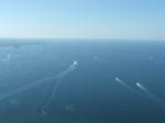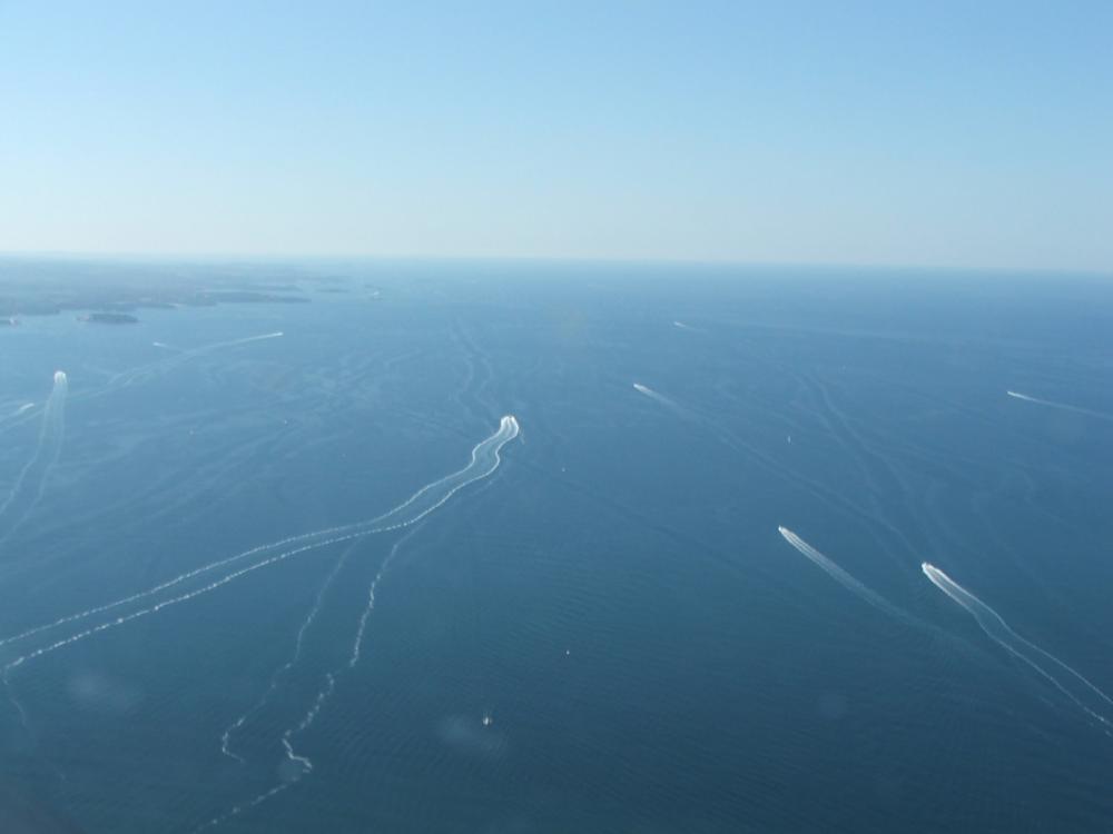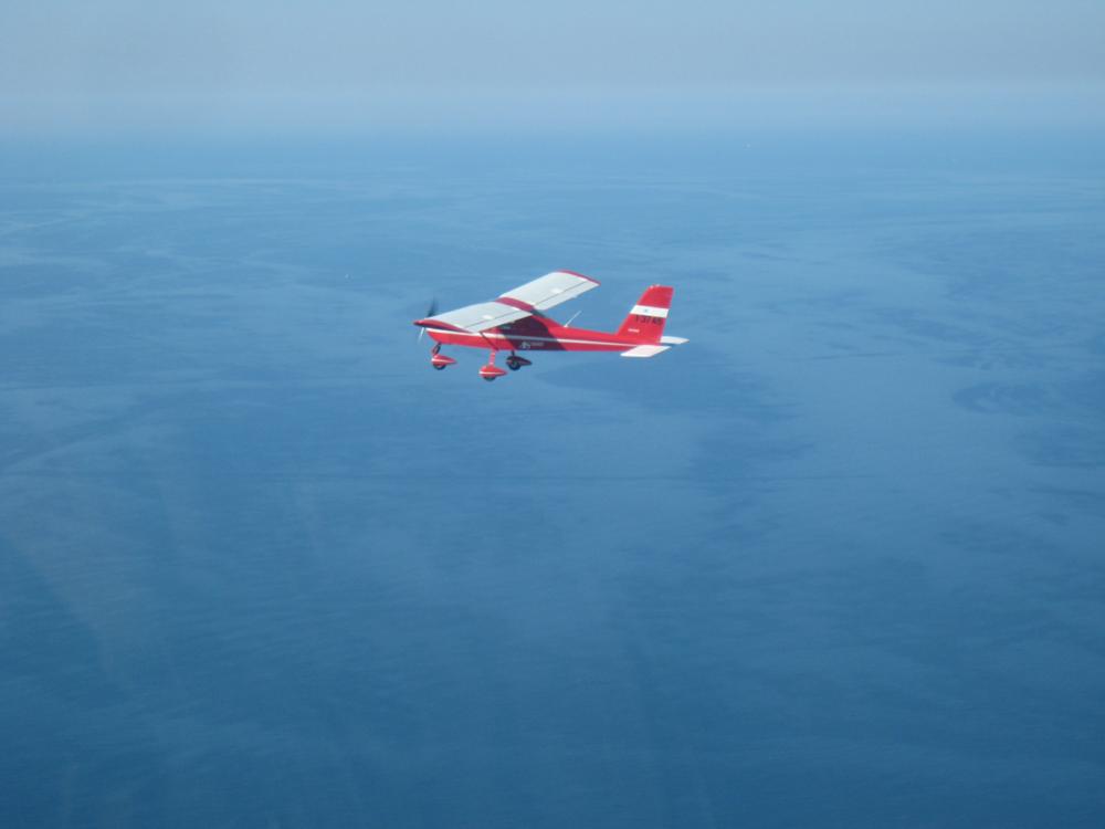 Al rientro in aeroporto scambiamo due battute con altri piloti italiano (ce ne sono parecchi!) che si apprestano a decollare, prima di prepararci a nostra volta per il volo di ritorno. "Spillo" una decina di litri di verde (meglio un litro in più che una goccia in meno) dal "tanker" di Lucio, indosso l'ormai "abituale" salvagente e faccio un cenno a Flavio che effettua la chiamata radio. Autorizzati al decollo dopo il bimotore per pista 36; attendo un attimo ... due attimi (era un bimotore!) che se ne vada la turbolenza di scia e ... a rieccomi in mare aperto.