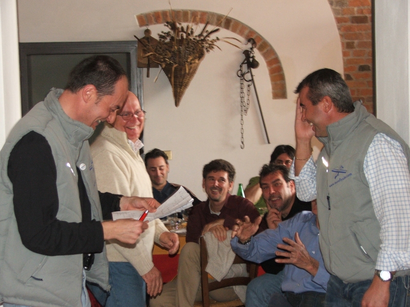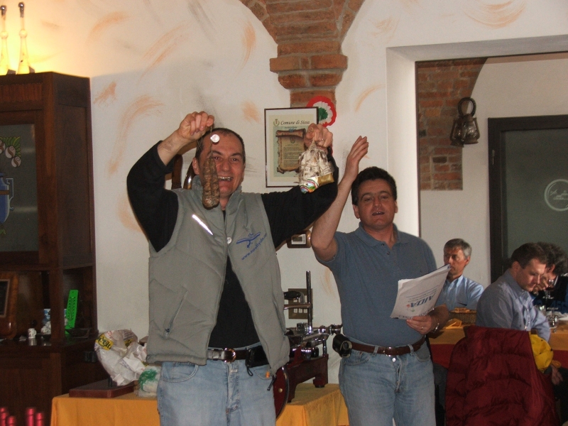 Durante il lauto pranzo nell'accogliente ed ospitale agriturismo "Al Casòn" i "patron" Gionny Baggio (Eurofly), Gianluca Onori e Carlo Valeriani (AIDA) distribuiscono premi a destra e a manca ... peccato che io mi trovavo al centro!
