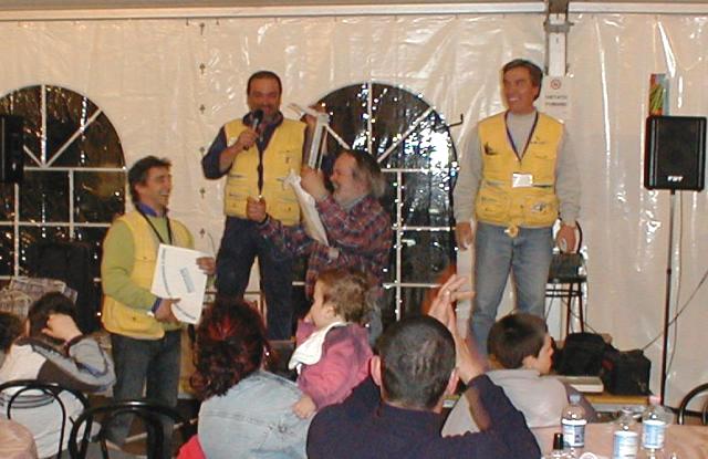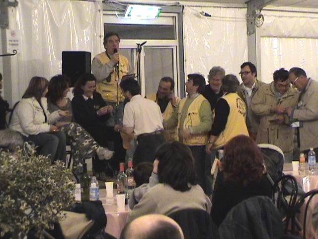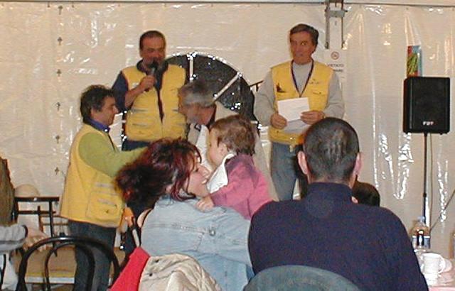 E veniamo alla serata della domenica. I "Baroni Rotti" festeggiano il loro 10° compleanno con un bellissimo gesto; la consegna delle foto dei due bimbi "adottati a distanza" a tutti coloro che hanno contribuito alla realizzazione del loro grande "sogno". Luciano ricorda poi, con un toccante pezzo musicale, tutti gli amici che ci hanno lasciato per ritrovarsi a volare lassù, nei cieli più alti e consegna il "Memorial Enrico Nucci" a ????.