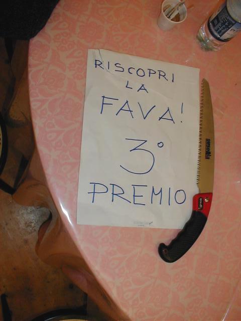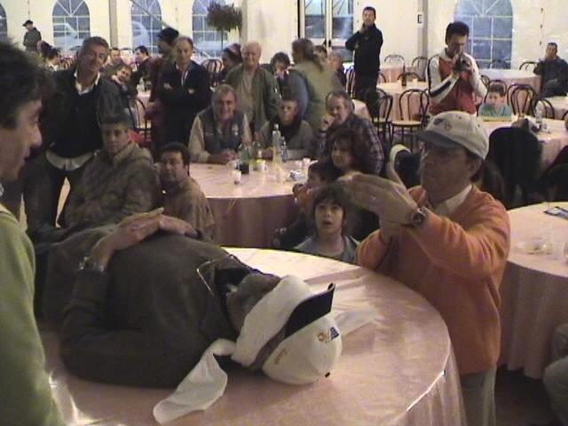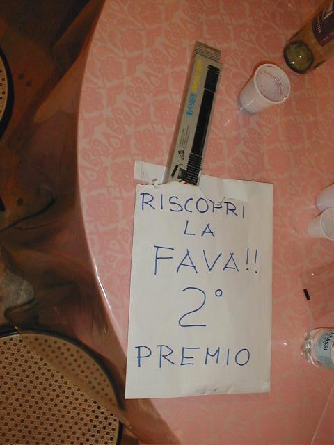 Ed eccoci al "nuovo" spettacolo del mago namberuan ... le magie (al profano) possono sembrare le stesse, ma c'è una sostanziale, rivoluzionaria, orientale (e unica) differenza: il mago indossa una casacca cinese e pronuncia rituali cinesi (cian, cin, ciun ... e non proseguo oltre per non svelarne i misteri!). Seguono le finale del golden-ball, che vede vincitore ancora una volta la squadra del Pinguino di Quarrata, e della "miglior fava" che mi vede vincitore assoluto seguito dal Bruschi e dal Buoncristiani; e qui mi viene subito da fare una considerazione: ma se io con la mia fava ho vinto il primo premio ... che caspita di fava avevano gli altri ??? Il pensiero è molto triste! A chiusura di serata un nuovo esilarante trio comico (di cui non ricordo il nome) che al loro ingresso creano un fuggi fuggi di mamme e bimbi saturando il "palatenda" di fumogeni bianco-verdi.
