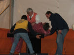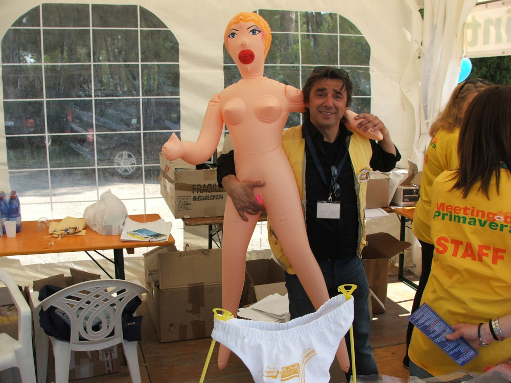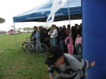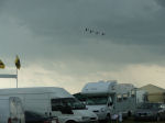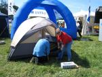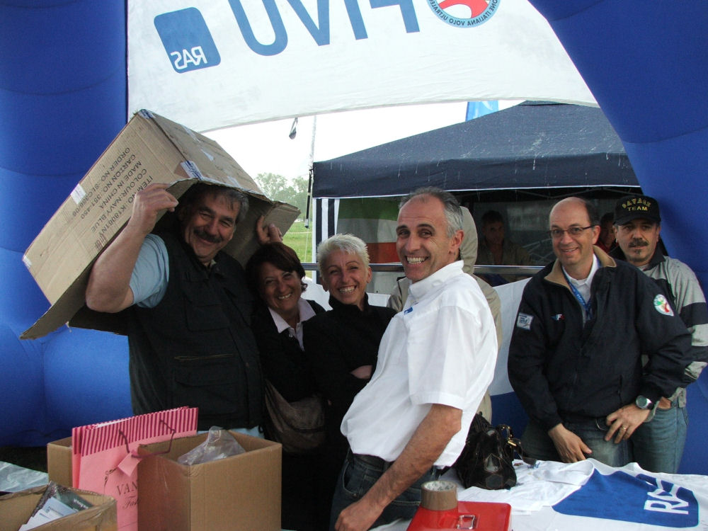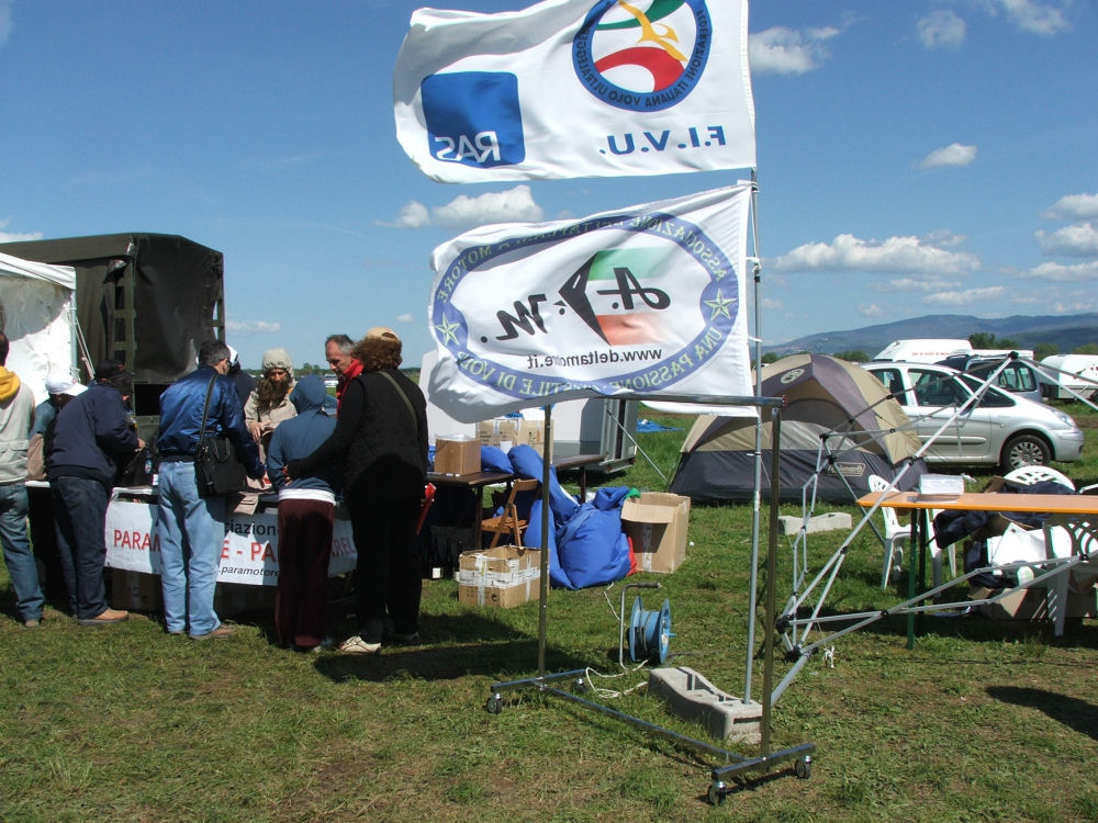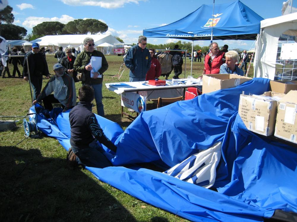 Verso le 10,30-11 il vento è talmente rinforzato da costringere lo sbaraccamento di diversi stands; anche noi mettiamo a terra il gonfiabile FIVU ed io aggiungo tiranti alla mia tenda.