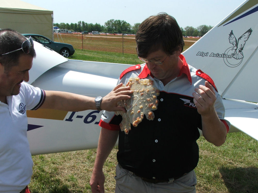 Faccio "una vasca" col Flavio e sul mezzodì, casualmente, ci ritroviamo a passare dallo stand di Simonini dove, ancor più casualmente, troviamo Graziano & c. impegnati in un fugace spuntino al quale siamo gentilmente invitati a partecipare.