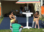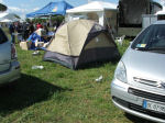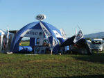 Durante la notte si alza un forte vento che spinge la parete sottovento sino ad accarezzarmi il viso e le bandiere dei vicini stand sbattono talmente forte da sovrastare il rumore delle varie ventole e generatori, ma nel sacco a pelo si stà bene e caldi e ... si può resistere tranquillamente sino all'alba!