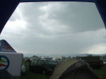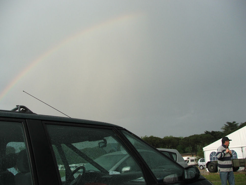 Nel primo pomeriggio vento e nuvole in veloce avvicinamento da nord presagiscono un imminente temporale e difatti tra le 16 e le 17-17,30 un nubifragio si sfoga violentemente sul campo con tuoni fulmini e qualche "assaggio" di grandine; cerchiamo tutti un minimo di riparo e tutto ciò che lo può procurare viene irrimediabilmente "sovrappopolato".