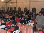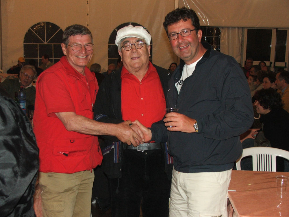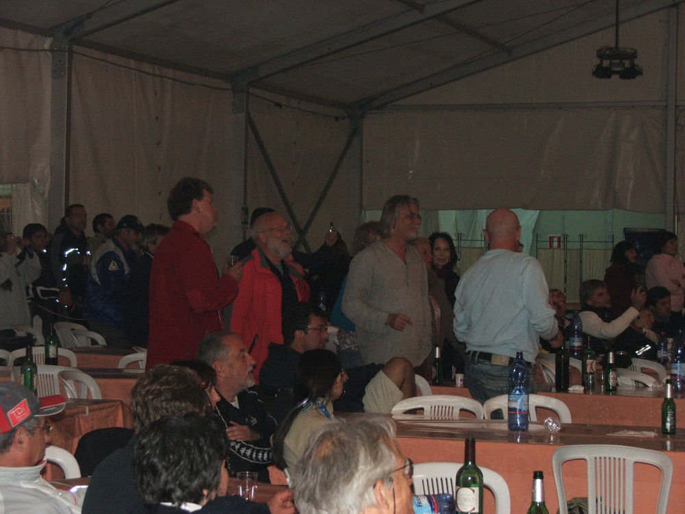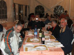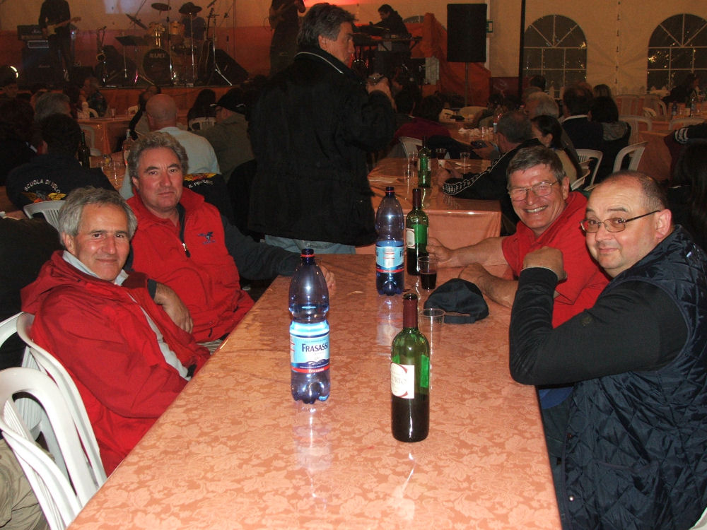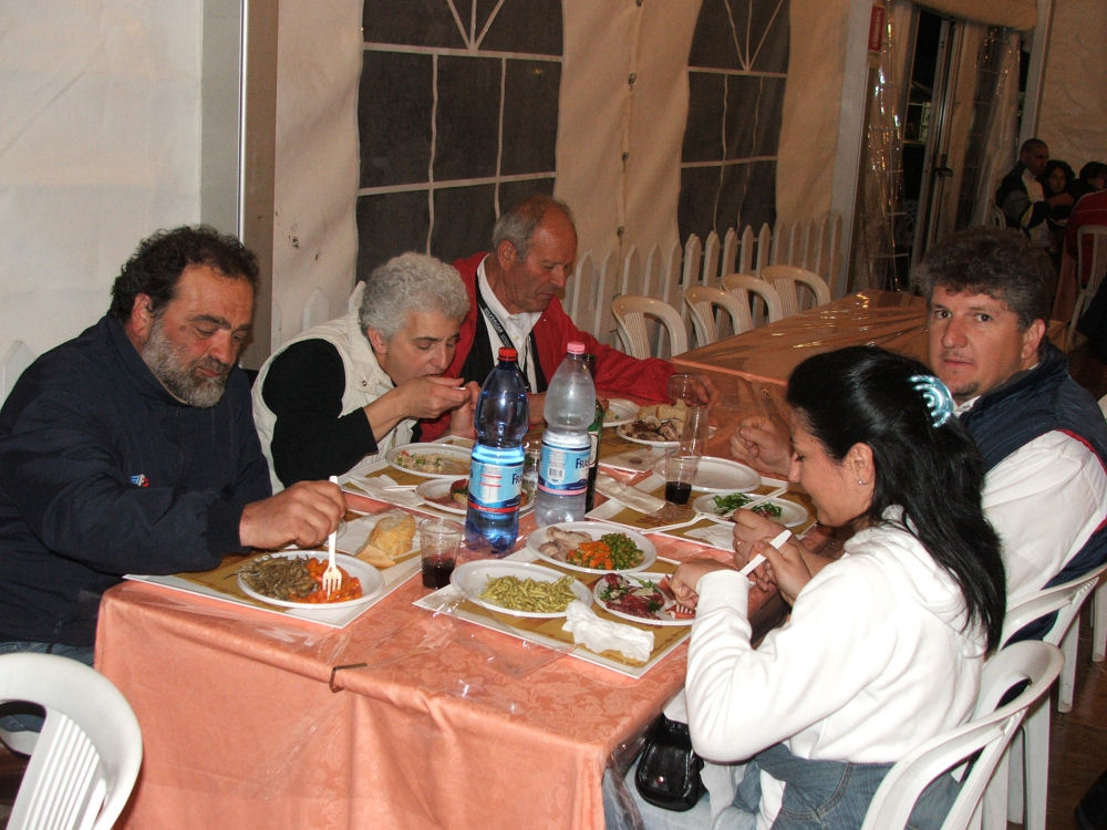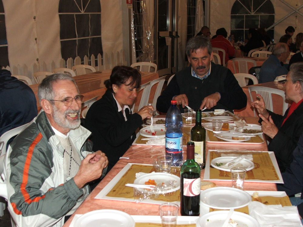 Fa freddino e ci rechiamo al "palagnamabbuffate" (anche quest'anno entrata a pagamento ed uscita ... se stai in piedi) con tanto di maglione e giacchino; ci ritroviamo in tavolata con Flavio, Guido, Ico, Roberto, Paola e Massimo, Rosa e Giuliano (nuove simpatiche conoscenze). Il sempre impareggiabile mago "numberone" scatena l'ilarità di Rosa, al suo 1° MdP.
