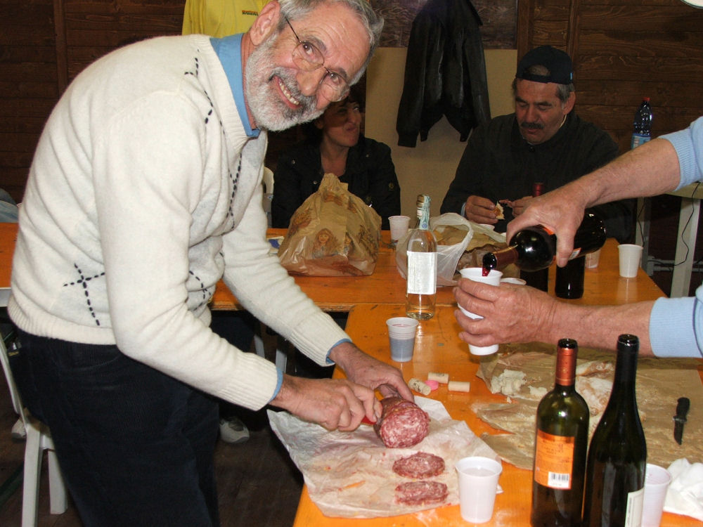 Come dicevo leggero e frugale ... a base di salame, soppressa, cicciole e formaggi vari, il tutto annaffiato da vini proveniente da ogni parti d'Italia; che fatica trovare un bicchier d'acqua! Anche in questo Renzo è ineguagliabile!!!