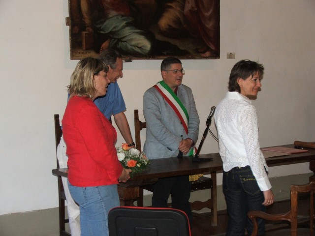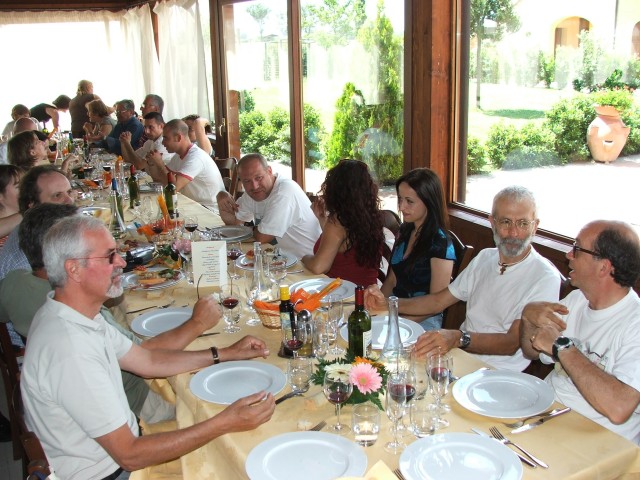 E' un appunto ormai scolorito datato "Notte sotto le stelle" (15/8/06) al quale non era stato fornito alcun particolare; mi era stato detto semplicemente che quel giorno (oggi) dovevo essere a Serristori, niente altro. Poi, col tempo, abbiamo scoperto l'arcano: avvalendosi di costellazioni, metar, taf, carte del tempo ed altre diavolerie del genere, Valeria e "Orso" avevano stabilito che oggi era il "loro" giorno e avevano deciso di convolare a giuste nozze (cosa non farebbe un uomo pur di passare a giocare nella squadra "sposati" nella leggendaria ed immancabile partita "sposati" contro "celibi"!).